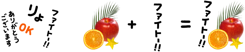 ↑ 持っていると便利な文字だけのセット。色んなスタンプに一言添えて使えるよ。(果物写真は別商品) |