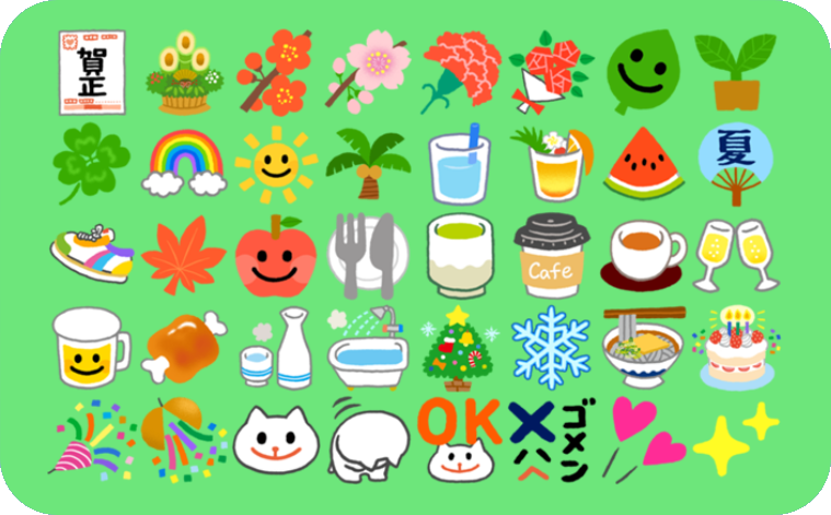 絵文字使用画面の見本コーナーも作りました↓ クリック先は LINE STORE(外部サイト) |